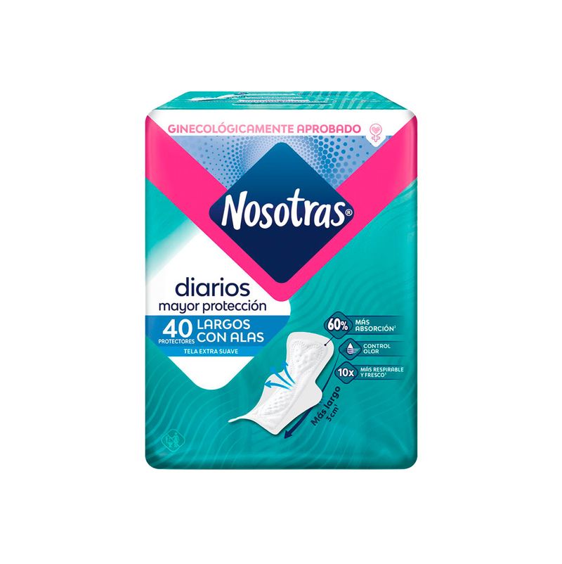 Protectores Nosotras Diarios Largos con Alas x 40 und. Regalo: 1 Paquete de