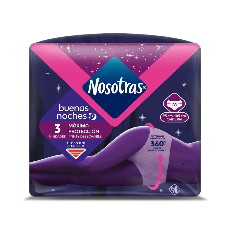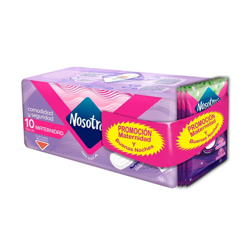 Toallas Higiénicas Nosotras Buenas Noches Máxima Protección x 3 und talla M,1 Paquete de Toallas Higiénicas Nosotras Natural Buenas Noches Tela x 24 und + 20 Diarios Largos, 1 Paquete de Toallas Higiénicas Nosotras Maternidad x 10 + Buenas Noches x 3 und, 1 Paquete de