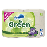 Para un cuidado especial, un producto amigable con el medio ambiente. El Papel Higiénico Familia Green no solo es más suave y rendidor, sino también más sostenible. Recicla su empaque.