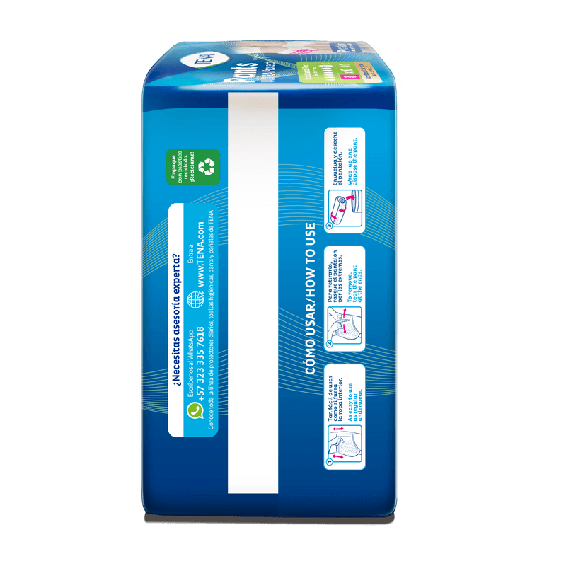 Ropa interior absorbente para personas activas con incontinencia fuerte. Es similar a un pañal, pero se ve y se siente como ropa interior, su tecnología cuida más la piel de los adultos.